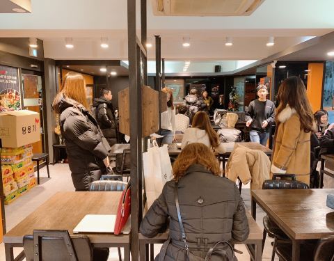对于我这个中国胃来说真的是太欢喜了,这家店现在开了很多分店,来明洞玩的朋友可以关注一下,真的还不错,和朋友点的麻辣烫一份+麻辣烫一份+鸡蛋手抓饼一份+饮料一瓶,才3万韩币~重点是太多了两个人吃的超饱还没吃完,手抓饼就是国内的味道~老板娘超热情,还给我们剪锅包肉,地铁2号线乙支路入口出来直走的第一个路口右转就看到了~二楼就是 座位还是蛮多的~朋友去聚餐也是没问题的~