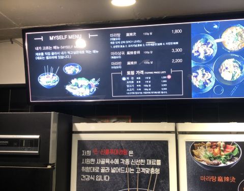 这家麻辣烫店真的优秀!以前在明洞逛完街想吃点中国料理真的是太难了!终于被我等到了!!味道挺正宗的,价格也公道,并没有因为在明洞就高价!菜品新鲜环境不错!可以用中文点餐哦~