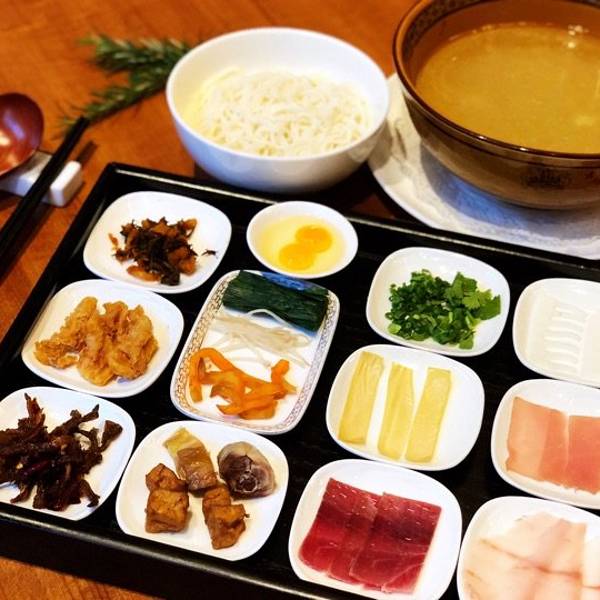 过桥米线售价¥68一套,一个盘子台上桌,里边装着12小碟配菜。高汤上桌,碗的温度很烫注意不要碰到了。把配菜和米线陆续放入碗中,用勺舀汤喝味道清甜浓郁,能够很明显的感受到鸡的香味,没有明显的味精鸡精汤粉等添加剂的味道。