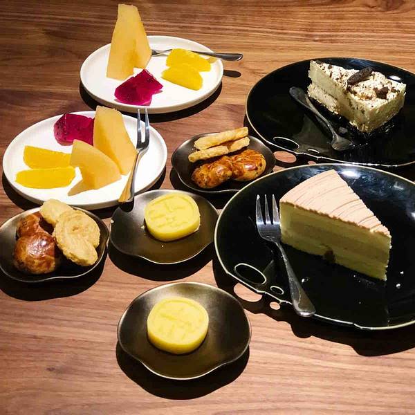 茶可以挑选不同的种类,每一种都有配水果和小点心。白茶和生普还会额外附送一块蛋糕。蛋糕可以挑选朗姆栗子、抹茶和奥利奥巧克力三种口味。