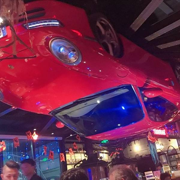 - 上海外滩的名店,保时捷911直接挂在天花板上旋转,而且它还是一个时钟!满满的都是文化和科技的气息