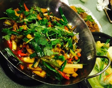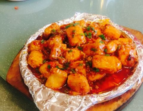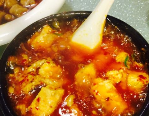 大酒店附近100米处的店,看上去有点农家菜的样子。饭点客人还挺多的,但是菜式基本都是辣的。同事们都不吃辣,能点的菜也是所剩无几。总共就点了千叶豆腐,铁板牛肉,杂锅和筒蒿汤。菜量是真的大,四个人三菜一汤都没要米饭也没吃完。