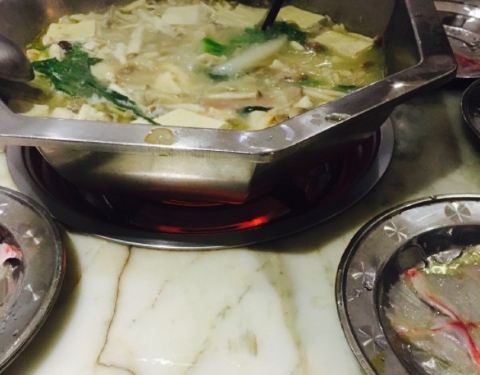 首先说一下味道,鱼片的很薄,晶莹剔透,滚锅里涮个几秒钟即可,鱼很清新,虽薄,但不会散,还有专门生吃的部位可以选食。调料还可以,觉得有小米辣和海南黄灯笼辣综合。锅底,滋补一边汤浓味鲜,片完鱼片后留下...