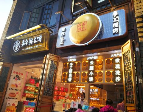 - 嘉华鲜花饼是昆明的一家老字号,在市内有很多的分店。很多游客经过,都会进来看看,并买些鲜花饼带走
