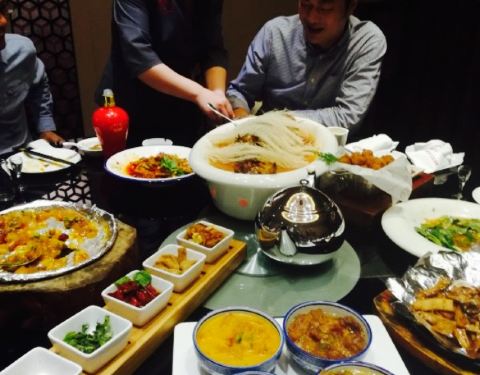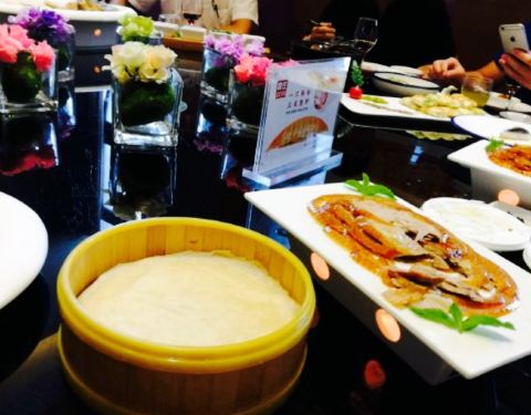 招牌菜品包括酥香嫩烤鸭,虾锅贴,红烧黄河大鲤鱼。