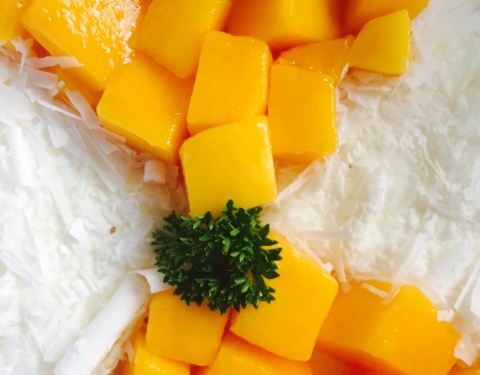 - 新出的种类,表面一层香脆的酥皮,里边是冰凉的慕斯口感的奶油,还夹杂着些许芒果果粒。好看也爽口,推荐