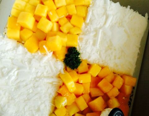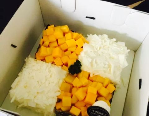 ...香香的,吃起来还有果肉,非常入味,不过我家那位就一点不开心,他喜欢芒果千层,可是都一样,很爽口