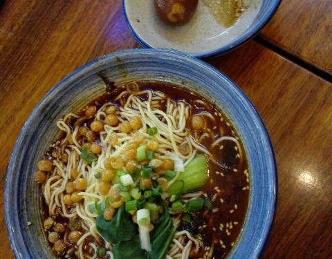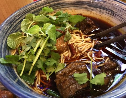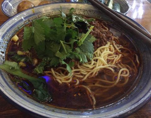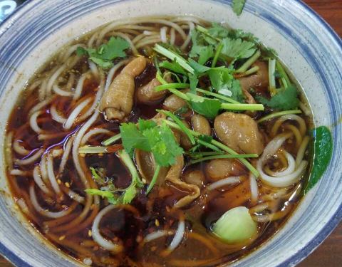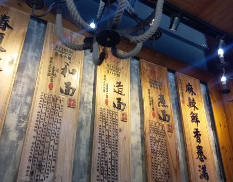 - 尝尝这家的重庆小面,这种怀旧古朴的装修风格像是经历了另一个时代。味道醇厚,充满了豌豆的清香