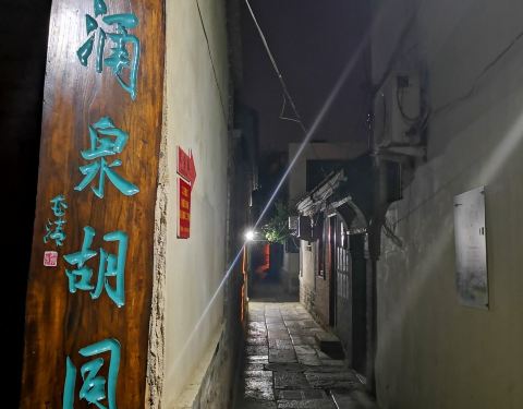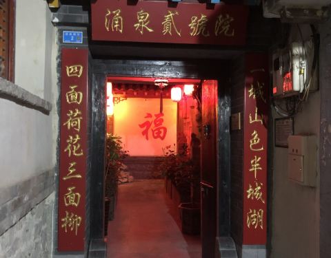 在济南大明湖南门附近有一片老城古巷,巷子里有一些零零散散的四合院改成了很有风情的餐厅。曲水亭街旁有条巷子叫涌泉胡同,走进去几步就能看到低调的二号院隐藏其中。没想到里面豁然开朗,院子被绿植打扮的分外有味道,还有一个泉池,池子里养着鱼,冰镇着饮料和酒。院落四周都是包间,正中央有一个棋盘做的桌子,我们就此坐下吃晚餐,感觉非常亲切和随意。这一顿鲁菜是我们在济南吃的最喜欢的,虽然还是有点偏咸,总体觉得不错,只是菜的量实在太大了。在这里吃饭既能尝到鲁菜,又能感受老城风情,值得推荐!