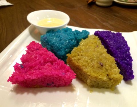 云南的大硬菜 傣味手抓饭终于吃上啦 傣味手抓饭是云南西双版纳的特色美食,吃手抓饭不用筷子和碗,就手抓了吃。 店里的手抓饭是现做的,大概要等半小时,等的饥肠辘辘了才吃上,不过等待值得,体验感还是很美好的。在这个时代返璞归真用手抓着吃饭接地气且踏实。 手抓饭有7个配菜,中间有四色米饭,每个饭团都代表着不同的味道。最喜欢手抓饭的点在于万物皆可搭配,还可以自由自主的来。 🔹🔹🔹🔹🔹🔹🔹🔹🔹🔹🔹🔹🔹🔹🔹🔹🔹🔹🔹🔹 配菜有罗非鱼、狼牙土豆、笋、豆角、乌鸡丝、烤金针菇、烤五花肉。 罗非鱼是我最喜欢的一种配菜,在香茅草的熏陶下火的炙烤下,这份鱼肉质紧实也不失鲜嫩。 狼牙土豆有点瘫软了,笋是原汁原味的,乌鸡丝肉质紧实很好吃,烤五花肉也是脆脆的很有嚼劲。 捏小团糯米饭,加上配菜和蘸料就可以快乐的吃起来了,味道还不错的,喜欢!
