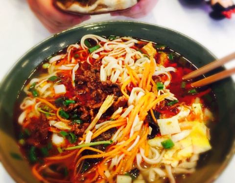 臊子面和biangbiang面味道不错,合适我们这边的口味,比我在西安吃的更可口。不过肉夹馍没有西安本地的鲜美,肥肉稍微多了一点,但是味道也不错啦。到店好多人点了凉皮,下次想去试一试,还有酸汤水饺和羊肉泡馍...