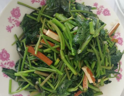 在景点的入口处,方便快捷。 点菜看到保鲜柜里最后一条梅白,果断请老板赶紧清蒸,酱油有点多有那么点点咸,应该也是徽菜的味道^O^,鸭板芹是看了菜名点的,第一次听到更是第一次吃,有芹菜和空心菜夹着的味道,...
