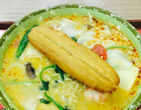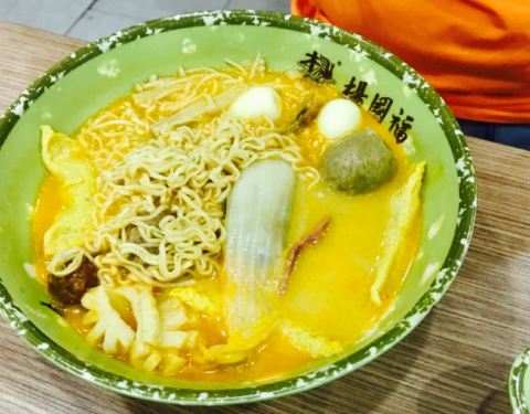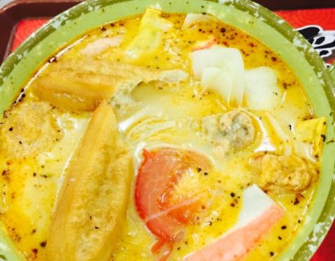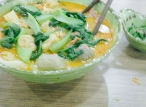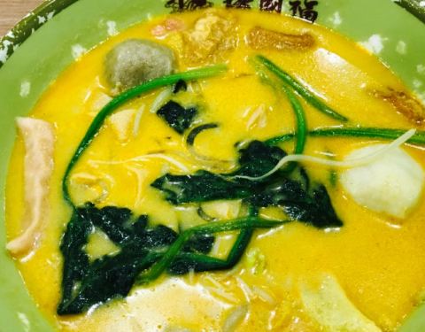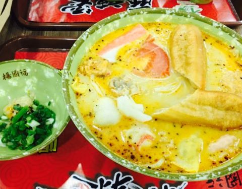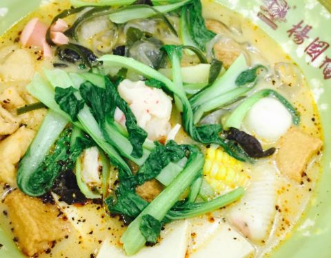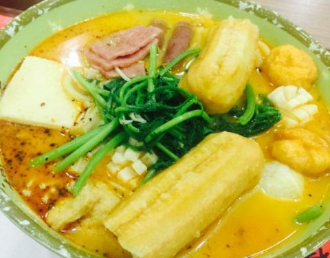 杨国福麻辣烫最近几年开了许多家,也算是一家蛮火的麻辣烫,今天去拔草了。差不多25块钱一斤,荤素同价,为了划算一点我就都拿了荤的,放了蛋饺,培根,甜不辣,鱼豆腐,腐竹,还有油面筋,爆鱼等,还有一份类似于米线的东西,一共十七块钱。那个类似于米线的东西看起来不是很爽口,只是吃的时候觉得很软很不错,这家的蛋饺不是很好,但是爆鱼的味道还不错,有点甜味,这家的油条我没有放,本来吃麻辣烫我是必放油条的,不过这家的油条长得很怪异。汤底我没有跟他说要原味,是他就上了微辣微麻的,微辣可以接受,但是微麻有点不行,吃进去嘴巴还是挺麻的,汤的颜色很漂亮,可是并不是很鲜,没什么特点。拿了麻酱跟香菜,葱作为蘸酱,麻酱实在太稀了。其余都还好,下次应该不会再去。