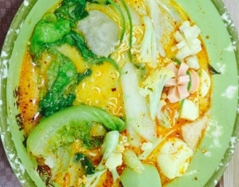 - 有各种菜,圆子,肉片,金针菇等各种必备食物,再加放点各种面,煮出来大大的一盆,点微辣,吃起来十分的爽
