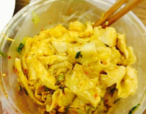 叫了一次外卖。今天到店里去吃了,味道比外卖好吃。【凉皮】酸度够,面筋不错。份量足。【油泼扯面】好大一份,面很有嚼劲,微辣比较入味。【干拌臊子面】很赞,面很爽口,这种不能外卖,堂食好吃不少。强烈建议老板出小份,份量太足,吃不完真的很浪费。
