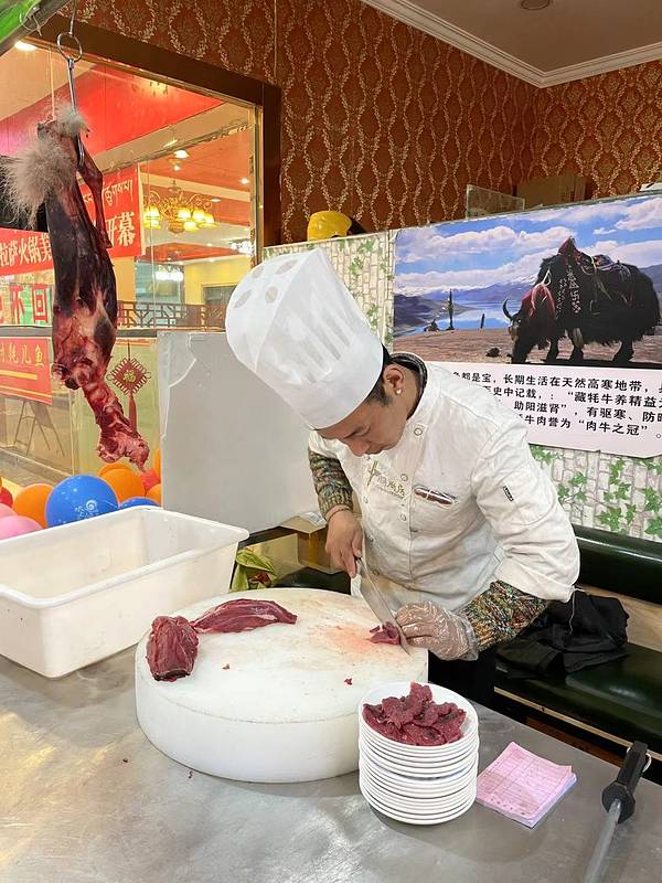 《超高性价比,吃到扶墙出》 耗牛肉在拉萨,一直属于高富帅行列,人均至少消费都在100多元左右,价格从来就不亲民。 水上漂河鲜鱼牦牛肉自助火锅主打牦牛肉和河鲜自助,店址在城市百货2楼,逛完布达拉宫和罗布林卡,某美食网找的这家耗牛自助,毕竟在物价高昂的拉萨,吃自助餐图的就是方便和划算,据说这是第一家价格平易近人耗牛肉不限量的自助餐厅。 走进店内,餐厅装修还算新颖,店员态度也很好,我们人多给了包厢,每个人小火锅是一种大家喜闻乐见,都能接受的,锅底料为牛骨加上新鲜的菌类,和平常的藏餐重口味相比清淡了许多。 转到自助取餐区拿食,中华鲟、齐头黄,黄辣丁、江团、梭边鱼,紫鲢,海星等还很上档次的河鲜都有;各种小吃,甜点,凉菜,火锅配菜,荤的素的应有尽有。当然想要吃到扶墙出,单是各种鱼也是不够的,肉族们若吃河鲜不过瘾,那这里肉类够你大快朵颐的了,无限量供应的耗牛肉,谁都不会拒绝吧。它们家的牦牛肉种类很多,有师傅鲜切牦牛肉片,还有牦牛肉丸子、腌制牦牛肉等;雪花纯生、勇闯天涯,可乐、雪碧、红茶,绿茶,拉萨凉茶,红酒、白酒、药酒,鲜榨果汁,敞开肚皮随你免费喝! 这家自助不到100算在内地普通价位档次,但居然没有时间限制,不像内地同等餐厅都有用餐时间要求,能一次吃过瘾,还能吃很多种花样儿的,真的要求不能过高,你可以放开了吃,性价比超高,最重要的是,无限量供应,一直吃到扶墙出! 水上漂河鲜鱼牦牛肉自助火锅因为实惠的性价比,耗牛肉的不限量,生意通常较好,我们去的时候满座,吃货的世界我懂,在吃货的这条不归路上,人类,从来都不孤单! 小贴士: 水上漂河鲜鱼牦牛肉自助火锅 地址 :拉萨市城关区北京东路城市百货二楼; 人均:95元 推荐指数:五星 特色菜推荐:鲜切牦牛肉片,牦牛肉丸子,腌制牦牛肉,中华鲟,齐头黄,黄辣丁,紫鲢,海星等。