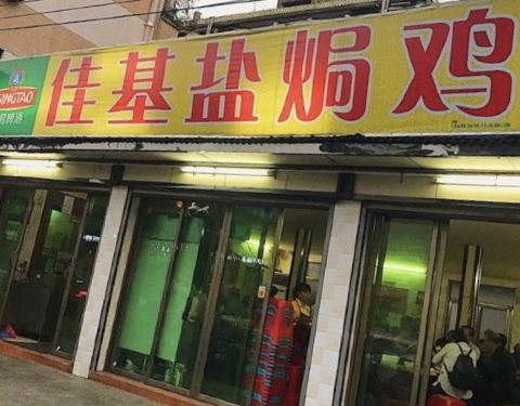 【位置】义龙西路3号(近欣奇蛋糕店)。牛老大火锅附近,比较著名,老字号的佳基盐焗鸡,被安利好久的鸡店,终于探店了。商家不大,环境像大排档那种,客人,超级多的,就餐点都是满座。服务还行,都会主动过来点单,上菜也快,菜谱上的类别不多,除了鸡烫菜和早笼点心外就没了,不过主要来吃盐焗鸡,其实主次已经分的很清楚了,我们也不免俗,当然要吃鸡。「盐焗鸡」70元/只。一只鸡,配白粥和一份萝卜干等于70元。看着一只不是很大,但是把肉手撕出来(有配一次性手套哦。)。还是挺多肉肉的,分量还是够两个人吃。这样的盐焗鸡和我之前吃的有些不一样。外皮色泽比较苍白,在进盐之前应该煮了很久。不是金黄的面皮,不过药材味很浓厚。鸡肚子里满满的药材,鸡的靠骨头的位置。腌制的非常咸,一定要配粥,胸肉比较柴,味道比较淡。白粥好喝,我喜欢这种稠度,白粥可以续。萝卜干也鲜美,脆脆的,配粥刚好。「白灼空心菜」10元/份。好便宜啊,一份量还很多呢。他家的白灼我很高兴的味道。空心菜又脆嫩,汁调的又鲜美。除了环境一般,味道还是不错的,价位还是比较亲民的,下次再来是早笼,除了鸡其他类都是10,15左右,确实很实惠。买单除了现金,也可以支付宝支付的,很合适。