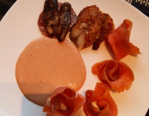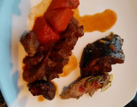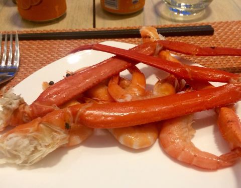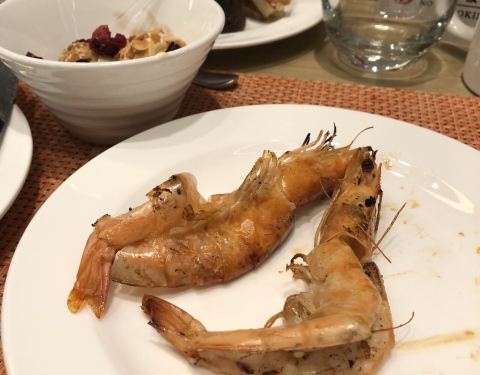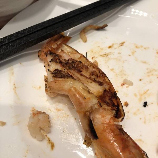 品类并不是很多,烤物只有牛排,虾,三文鱼排,扇贝,鸡胗鸡心简单五六种。点了牛排,三文鱼排和虾,都非常有特点。牛排肉比较死,在不是全熟的状态下还非常不好嚼,和朋友都没吃几口就要求服务人员撤盘了,三文鱼排尤其的咸,这是放了多少盐,烤虾就更厉害了,直接是苦的,虽然表面糊的不厉害,但是也没吃下去。