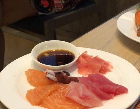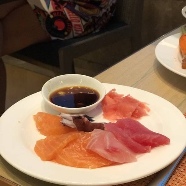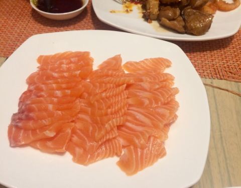 鱼生类,三文鱼刺身是我见过脂肪线最不明显的,刺身酱油也非常咸,我还从没在五星级酒店自助餐中遇到过这种问题,此处不与吃过的其他家做对比。