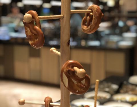 入住时大堂经理告诉我们早餐可以在37楼的开•全日餐厅用餐,品种更加丰富,同时我们的希尔顿套房也是可以到行政酒廊用餐的。 于是我们就去了开•全日餐厅吃早餐,结果刚要坐下就遭到了一对占位置的客人的驱赶,罢...