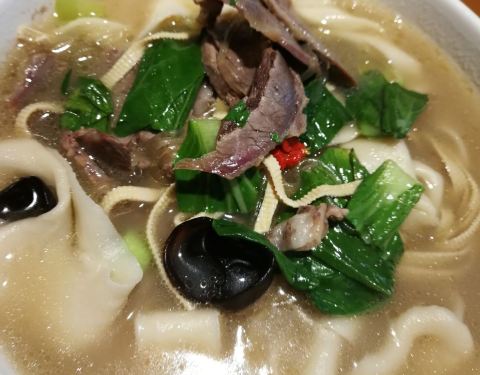 面很筋道,汤很白,很好喝。合记烩面是羊肉汤,里面有羊肉,粉条,豆腐丝,很好吃