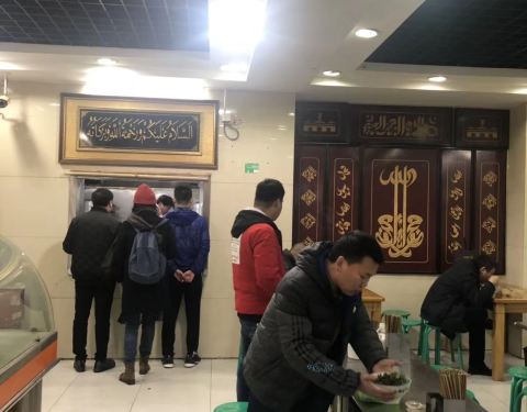 至于我吧,就是来尝尝鲜儿的。得拿着小票去窗口等,我在里面找了个位儿(外面台阶上已经坐满了)