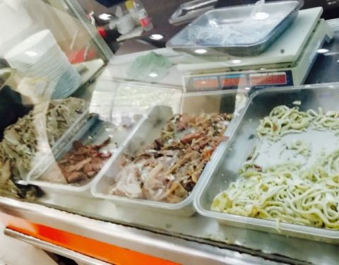 老字号。上次晚上游泳出来,某人想吃原油肉,我是没来吃过,七拐八拐的找到这,人那叫一个多啊,招牌原油肉毫无例外的卖光了。不情愿,今天提前翘班来附近换耳机,就又来了。刚12点,人也好多。来过的人都知道,这边环境很不咋地,但既然来这的,都是吃家,也丝毫不会在乎这个。至于我吧,就是来尝尝鲜儿的。哈哈哈。点了招牌原油肉,我要的牛肉丸。得拿着小票去窗口等,我在里面找了个位儿(外面台阶上已经坐满了)。上来一看,好大的碗,原来我以为冒着尖儿的大块头的肉肉竟是我的那一份牛肉丸。但是,确实很美味。样子看起来可能炸的时候过油不均放的久了,但遮不住鲜味。盐是自己放的。朋友让给我里面加了海带和面筋,很多啊。吃不了。他的原油肉更嫩更鲜,就是带皮羊肉煮的,很简单但很鲜美(原话),再喝着汤流着汗,很是舒服。还有饼,凉的,很瓷实,可以泡着吃,看附近来吃的父母都是买的边上的热芝麻烧饼。除了这两种还有小酥肉可选,另外海带跟面筋是可以单碗炖的,人多的话可以每样要了当配菜。