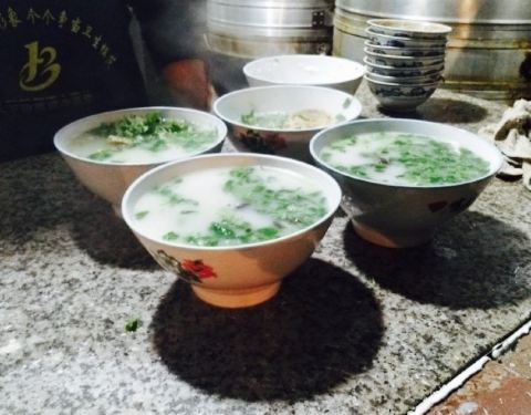 ????本地人说带我们吃一家最美味的羊肉汤,宋老三家的,在个巷子口,说实话刚进来时,看着环境真的一般,但很多人排队在很多在吃,找个位置坐都难这种,但是很鲜美的都在弄堂里。????一人来了一碗原油肉,再到隔壁买个饼,一口一口下肚,这一刻刷新了我对羊肉汤的认识,这味道让我希望每天都拥有。
