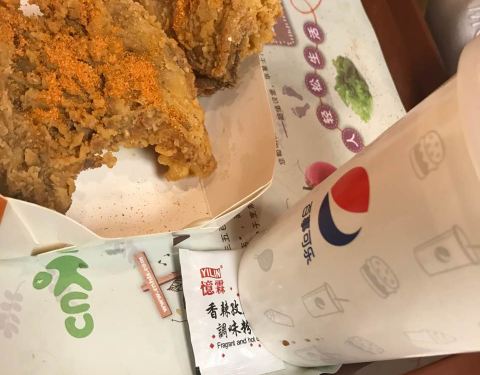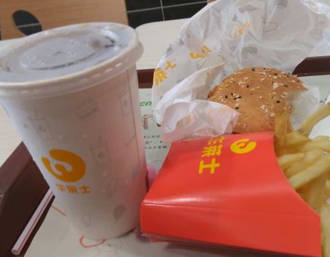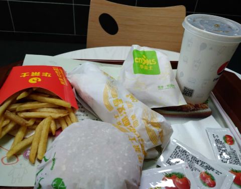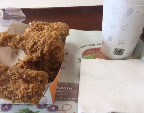 两个香辣鸡腿堡,再来一杯中可,棒棒哒!一顿午饭轻松解决了!