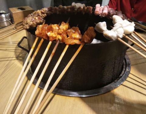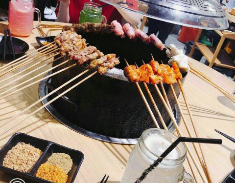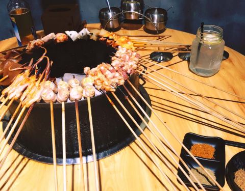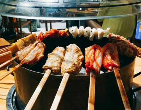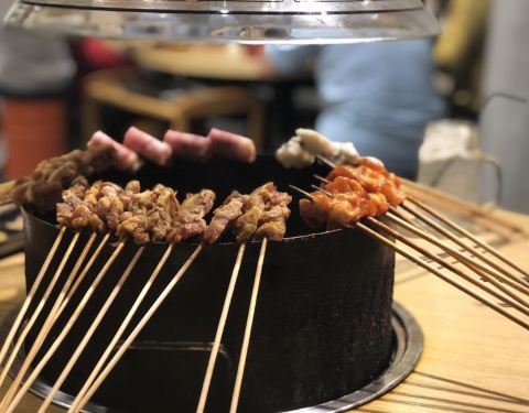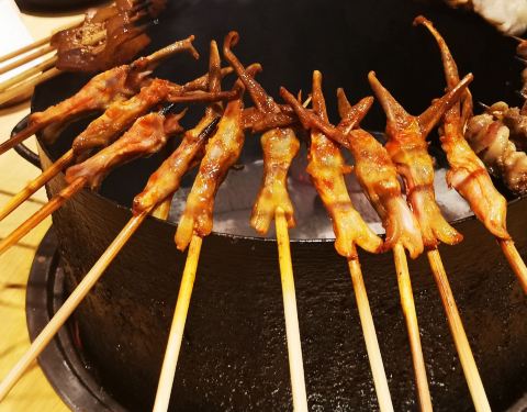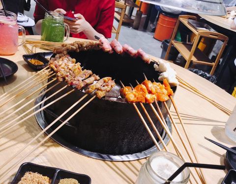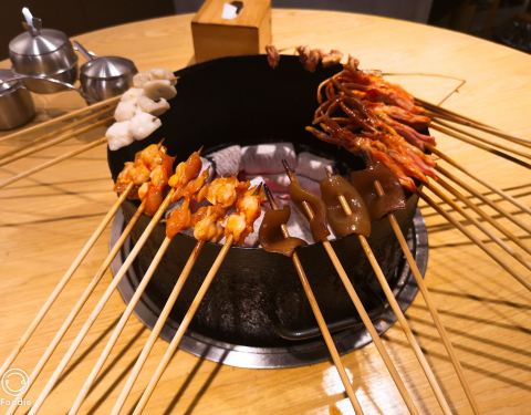 一定要提早去,因为若等用餐时间才到,那光光等排位就夠夠的咧,无奈谁叫他们家的人气太火了,在等待的过程中备受煎熬。看着招牌菜一个一个的空掉,真的是不安的心情,哈哈哈哈!半自助的烤串,有时候工作人员也会过来搭把手,大大提高了进餐的趣味性。四味鸡爪,碳烤牛蛙、碳烤猪蹄,满分茄子,去围炉小巷不吃这些,等于没有去过。虽然是烤串店,但环境很小资,超适三五好友大家一起美美的拍照咯。