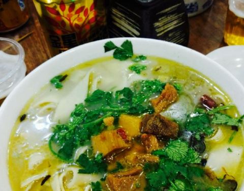 被本地人推荐过来,在公司附近比较正宗火爆的一家羊肉烩面馆。晚上人声鼎沸,去晚了没座位。凉菜都不错,烤串一般。烩面的汤很浓烈,羊肉味道很重,汤是奶白色。总体觉得还可以,有点室内大排档的样子。
