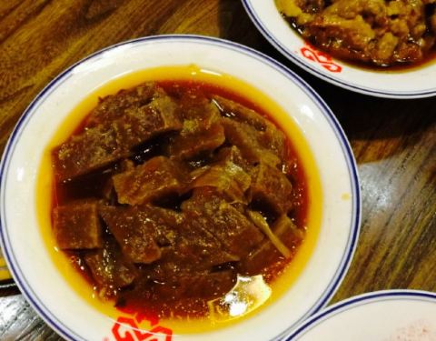 被本地人推荐过来,在公司附近比较正宗火爆的一家羊肉烩面馆。凉菜都不错,烤串一般
