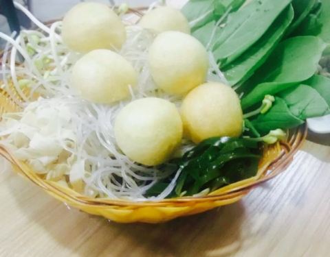 86套餐配的蔬菜是小篮子随便配的,但是还是不错的,豆芽粉丝青菜都很卫生清新。铁锅烧的,锅贴可以再加贴