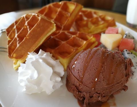 来这边办点事情,搜索周边发现了这家店,没想到在这里还有这么大的咖啡厅,环境没的说,饮品种类也不少,就是菜单写的松饼,也没有配图,正好想尝尝,结果上来的是华夫饼,虽然也很好吃,但是华夫饼比真正的松饼...