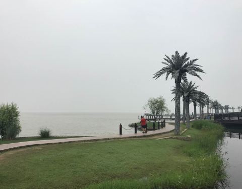 看完月亮酒店夜景后,队友又饿了。 我们一回头就见到湖边一排餐厅,淡季的晚上没什么客人,进店直接自助点单,队友喜欢芝士牛肉汉堡🍔,配了薯条和青柠饮料。 汉堡薯条味道一般,充饥可以;青柠饮料酸酸甜甜还挺好喝的。