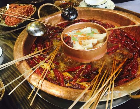 偶然经过鼓楼,就被小店的名字吸引了,感觉很有爱。一直喜欢吃串串,周末来拔草发现排满了人,这里的生意还是非常好的,经常有人排队等位。所以等到周一我选择了电话排位,这样就可以不用怕在外面被晒了。 餐厅位于鼓楼附近的恒隆中心后门。店面是很传统的装饰。进到里面感觉空间不算很大,差不多就十张桌子左右,难怪需要排队等位。里面的装饰也是典型的川式火锅店风格,一个个小小的细节无不凸显着店主的用心。两个人点了一份鸳鸯锅底,一端上来,浓浓的香味扑鼻而来。这里的红锅特别香,白锅里汤的味道也是非常鲜美。 这边的菜品也是很齐全,串串店里该有的品种这里都能看到。 点了份无骨鸭爪,开始不知道,烧熟了就拿来吃,感觉硬,后来学乖了,鸭爪煮了很久,味道还是很香的。 黄喉很脆,泡的恰到好处,口感不错。 最喜欢的是这里的孜然牛肉和掌中宝,放在红锅里涮了一下,居然能品出甜甜的味道来。 而比较让人失望的就是鹅肠了,在火锅里涮了下,感觉很硬难以下咽,据服务员说这个是没泡过水的。 这里的锅底菜品味道都不错,就是感觉筷子让人有点遗憾,如果换成川式火锅的长筷子,吃的时候就不会烫了,毕竟有些菜是没串的。 总体而言,这家店还不错,有机会可以来品尝下,正不正宗不知道,但是味道真的不错。