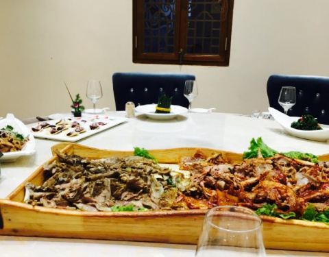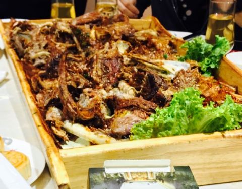 领导请客,来吃烤全羊。二十多个人,是一份标准套餐又点了些菜,感觉烤全羊的味道的确挺好的,不过完全不够吃。其它菜就没什么记忆了。还有就是会有人来唱歌,这是唱不够几首不走,略微有点烦。而且点歌就得喝酒,喝很多,感觉没人会愿意点歌。