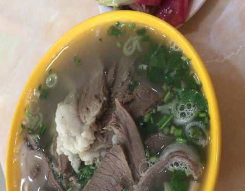 是当地一家非常知名的餐饮店,以西北特色羊杂碎为主打产品,他家的羊肉汤、羊肉泡馍、羊肉夹馍、白切...