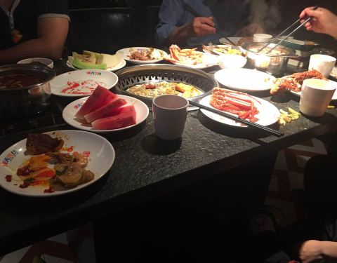 一个人来吃的,味道不错,菜品很全,能烤能涮!