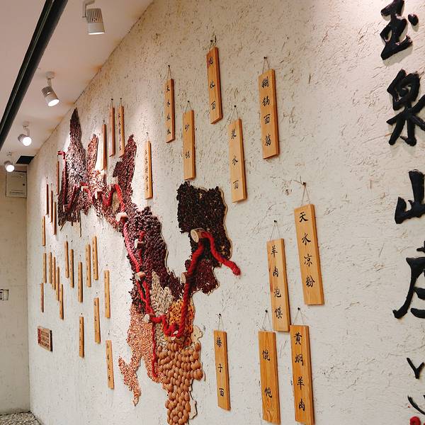 玉泉山庄可以看做一个美食山庄,建筑古韵十足,看看这边的墙饰 ,都是满满的特色,我不禁对这家店产生了浓厚的兴趣。 店内以刷卡为支付方式,你需要在前台买一张卡,以人均50元来买即可 里面商户众多,几乎都是特色,如果在兰州呆不长的小伙伴可以来尝尝,我们点了烤羊腿(小)+驴蹄子面+浆水面+杏皮水+洋芋搅团等。 #烤羊腿 40元一根 价格略贵,味道很好,辣椒+孜然的味道,还有羊肉的鲜香味,口感更棒,软嫩脱骨。 #浆水面 10元一份 一股发酵的味道,偏酸,建议向店家多要一点韭菜,韭菜腌过,很咸可以压制发酵的酸味,可以体验,毕竟特色。 #洋芋搅团 8元一份 口感软弹有韧性,这个酱汁必须好评,咸辣酸3味一体,值得推荐,价格也不是很贵。 #驴蹄子面 15元一份 吃第一口时,我甚至认为这是油泼面,其实真的很像,驴蹄子面不是驴蹄子肉哦,只是它的面叫驴蹄子,超级厚实,口感相当有嚼劲,味道就是油泼辣子的香辣口,有荤有素,搭配很好,包你吃饱 #杏皮水 额,这算是这餐厅里面做的最差的了,杏皮水很寡淡,要杏味杏味,更别说用李广杏给你做了,不好喝,不推荐哦! 这家店有意思的地方就是他们的装修风格,古韵+兰州建筑情怀,显得这家店很特色 吃完 玉泉山庄可以回酒店稍作休息,前往下一站。