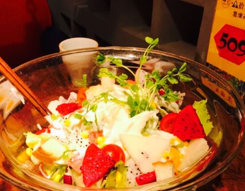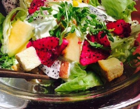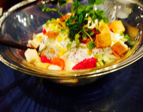 - 点的这几个菜味道都不错,尤其是这个水果沙拉,实在是第一次吃到这种沙拉里有面包快的,很赞,很大份