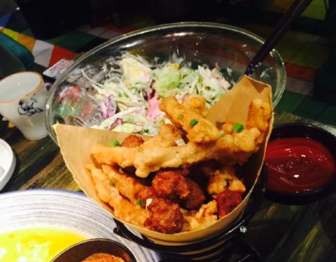 首先,他家的环境非常好,很有特色,每次去人员爆满。其次,他家的菜名独具特色,不看图片有些菜凭菜名根本猜不出,很有趣。五百岁的大沙拉,咖啡小排,孩子的八宝饭等。咖啡小排我很推荐很鲜美,口感酥嫩。最后,敲黑板划重点,她们家饭菜超大份,盘子超大,资深吃货的我很高兴??。老铁没毛病,快来吧。