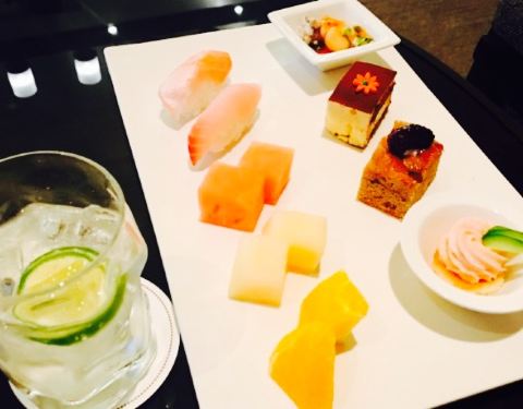 其中两盘蛋糕饼干特别入味,配搭的各种蘸酱就5种,还有一盘三明治和三文鱼和鲜虾的结合,再加上一盘...