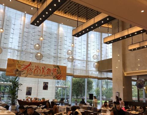 希尔顿酒店的环境设施是安顺最好的,吃饭很愉悦,值得推荐的哦。总体菜品是很丰富的,服务也很好