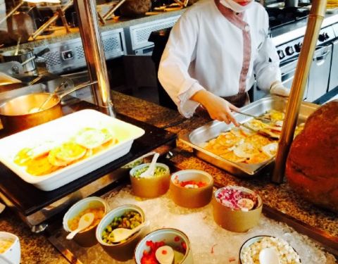 希尔顿酒店的自助餐,作为五星级大酒店,应该属于中等偏上水平。环境比较好,摆盘很好。中餐,西餐都有,水果糕点很清新。作为南方人的我,食惯了粤菜,好不容易在贵州找到,不辣菜的地方了。总体菜品是很丰富的,服务也很好。水果都是用特大盘装,份量很足。烤肉味道不错。希尔顿酒店的环境设施是安顺最好的,吃饭很愉悦,值得推荐的哦。