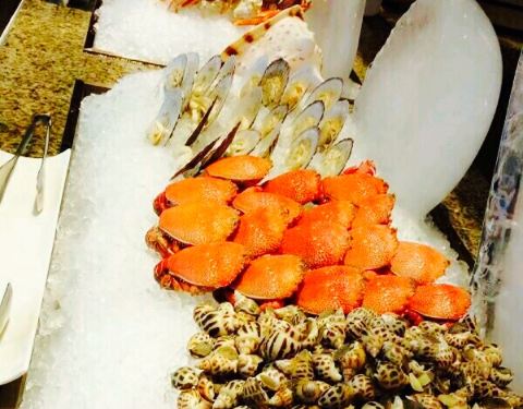 环境,在酒店的一层大堂旁边,环境不错。住酒店晚餐在吃的自助餐。就餐的客人好多,不过并不是很乱,所有菜品都供应及时,没有发现食物断档的现象。味道,三文鱼刺身很清新,寿司味道一般,果汁是鲜榨的很赞而且有好几种口味,有西瓜汁,哈密瓜汁,火龙果汁,芒果汁,煎牛仔骨肉质一般,羊排很好柔嫩汁多,餐厅中央还有一个大铜火锅,客人可以自选食物然后可以涮火锅比较有创意。餐后的冰激凌很鲜美,比哈根达斯的不差。总之是性价比超高的自助餐。
