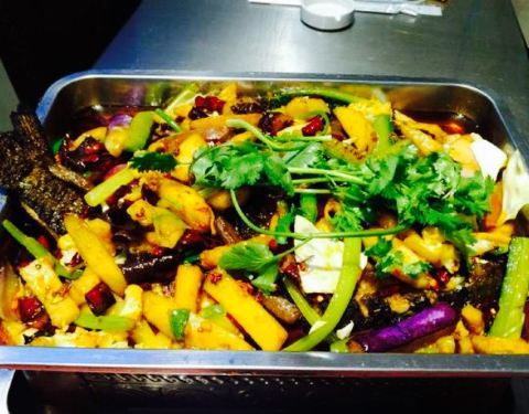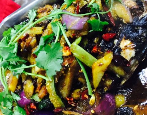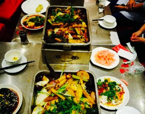 安顺找了很久,最终决定留一手烤鱼,烤鱼配件很多,洋芋,洋葱,花菜,豆角,魔芋,年糕,茄子,我们四个人点了五斤半的烤鱼最后全部消灭掉,到之后已经很好吃了,就是有些辣,对我们可以吃辣的还是不错的。蒸馒...