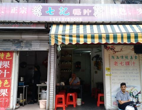 上一次来潮州,听客栈老板说起粿汁,先以为是果汁,后又臆测为糊状汤汁。这次来,找机会更正了一下错误信息。 找到攻略里推荐的开元老七粿汁,老房子里很旧的店铺,因为是早上刚营业,客人还不多。 点了小份的,...