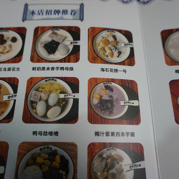 开元路--古法甜品 这个店是我看好多攻略上都有写,就去试一下了。唔。。。价格嘛,都在10块钱以上,但料也是有的。还行。原来鸭母捻就是汤圆