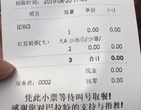 很不错的一次奶茶体验,抢的四折券,8.8有两大杯,我还特意带了杯回广州我老公喝,只是路程太远,回到已经不冰冷了!不过也好喝、红豆的不错,喜欢红豆的可以试试,口感还是可以的!下次再看看有没活动,再去买点...